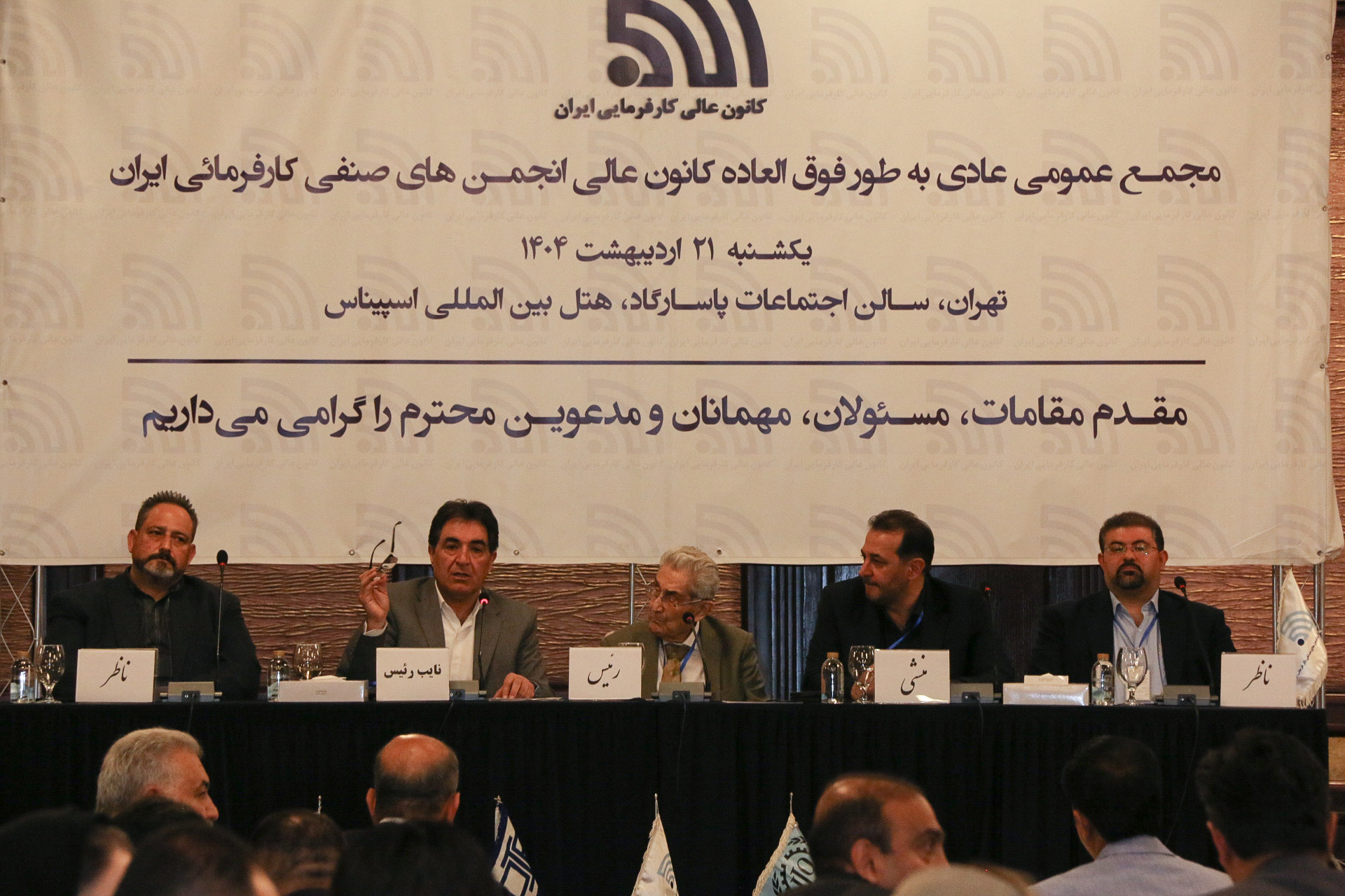 مجمع عمومی عادی به طور فوق العاده کانون عالی انجمن های صنفی کارفرمایی ایران در تاریخ ۲۱ اردیبهشت ۱۴۰۴ با حضور ۸۳۱ نفر از نمایندگان اعضا و با حضور نمایندگان وزارت تعاون ، کار و رفاه اجتماعی در هتل بین المللی اسپیناس برگزار شد .